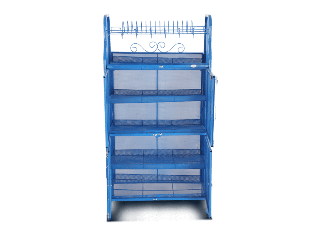 Royal Kitchen Shelf is a metallic item usually used in kitchen. It helps to store food and kitchen utensils safe and organized. It is made of heavy MS material. Food grade plastic paint has been used in the shelf. This is the best kitchen shelf in the country.